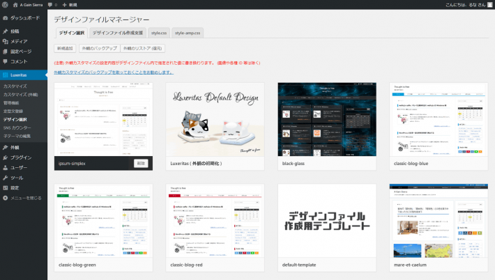ダッシュボードから、Luxeritas➡ デザイン選択